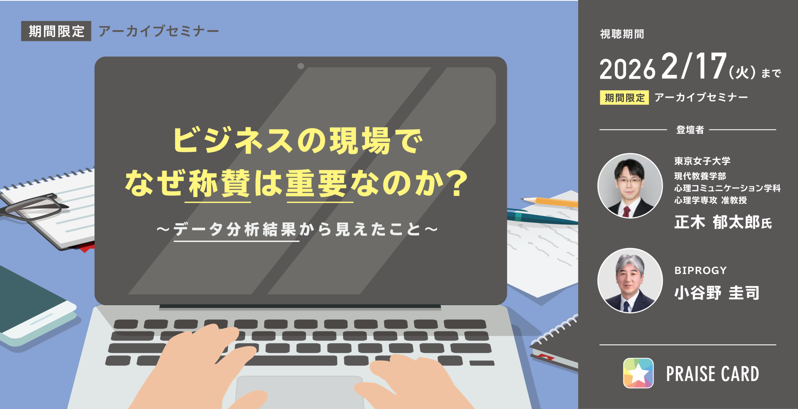 PRAISE CARDを活用した「称賛のデータ化」によるエンゲージメント向上の秘訣を、社会心理学博士・正木郁太郎先生との対談形式でお届けします。